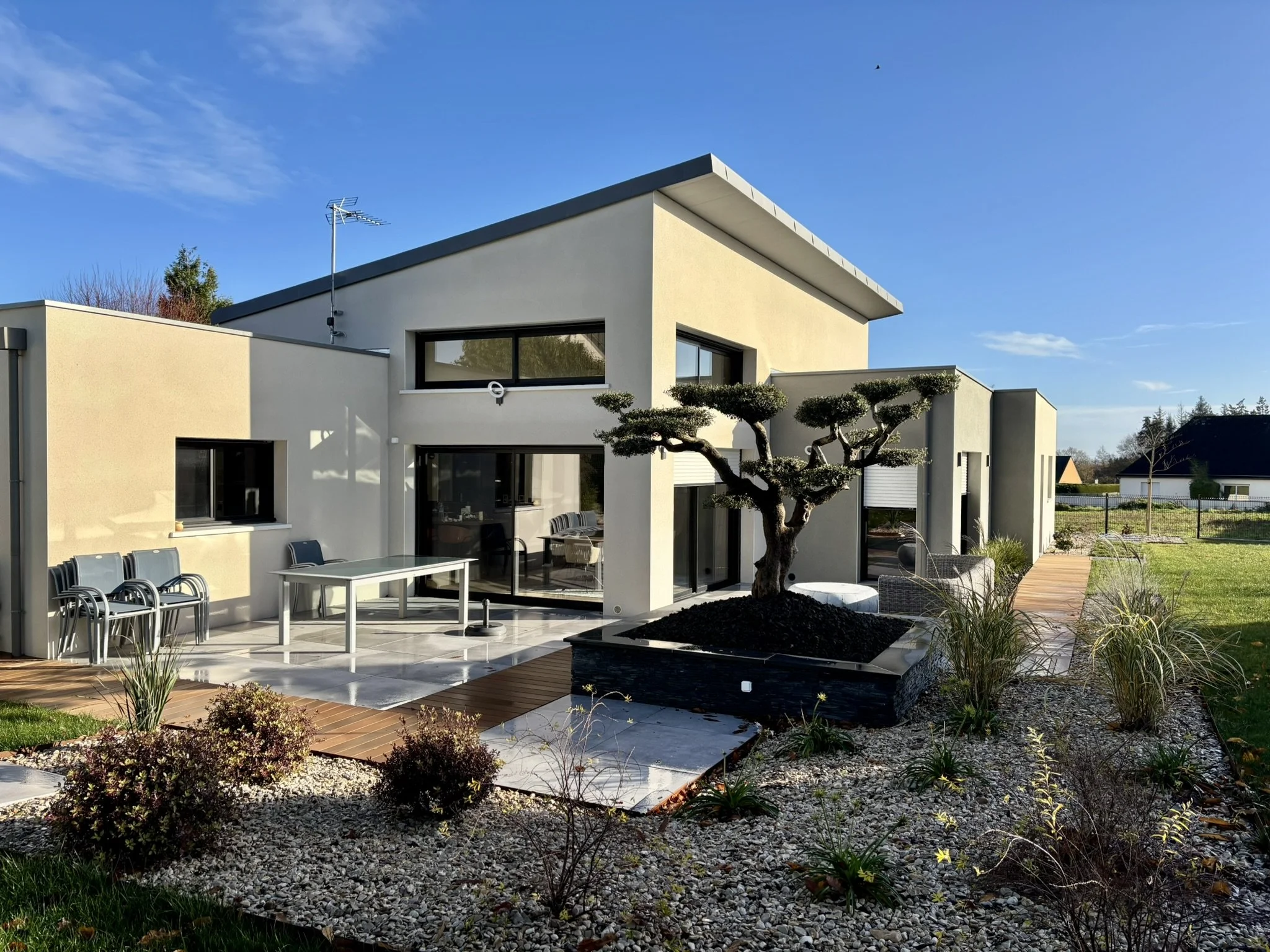 Notre dernière réalisation met 3 idées en avant pour métamorphoser un jardin : créer des espaces de vie distincts, structurer avec des végétaux maître et introduire un matériau signature.